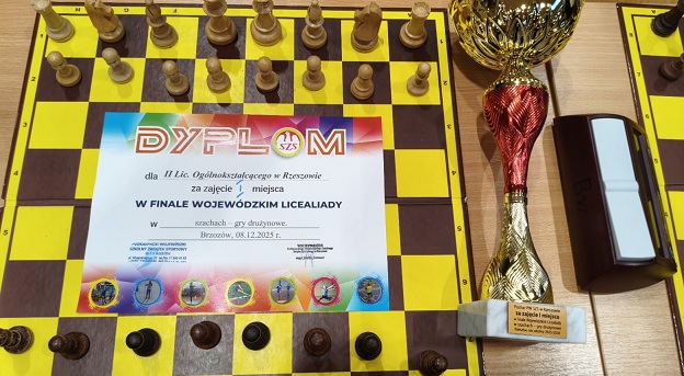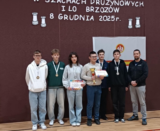 Szkolna Reprezentacja Szachistów w dniu 08.12.2025 r. zdobyła I miejsce w Finałach Wojewódzkich w Brzozowie, bezpośrednio awansując do Finałów Mistrzostw Polski !!!