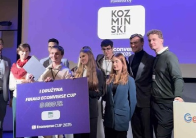 Zespół w składzie: Pola Gawron, związana z 4e- była uczennica tej klasy, obecnie uczestniczka programu AP w szkole amerykańskiej JDJ International Open Schools i przygotowująca się tam do matury, Martyna Chrzan- nasza maturzystka z klasy 4e, Milena Naleśnik z klasy 2e oraz Bartosz Orzechowski , zajął I miejsce w tegorocznej edycji konkursu Econverse Cup 2025.