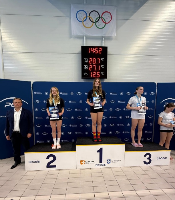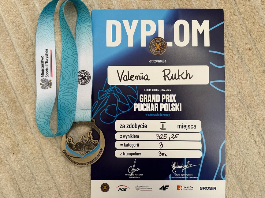 Śpieszymy poinformować, że podczas zawodów Grand Prix Pucharu Polski w skokach do wody, Valeriia Rukh z klasy 1d wywalczyła złoty medal z trampoliny 3 metrowej, brązowy medal z trampoliny 1 metrowej, oraz wykonała normy punktowe na Mistrzostwa Europy.