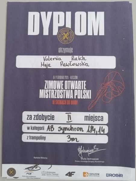 Serdecznie gratulujemy naszym uczennicom Valerii Rukh i Mai Pawłowskiej z klasy 1d wspaniałych sukcesów w skokach do wody – zarówno w konkurencjach indywidualnych, jak i synchronicznych. Wasze osiągnięcia są dowodem ogromnego talentu, systematycznej pracy oraz sportowej determinacji.
