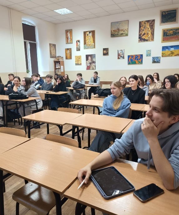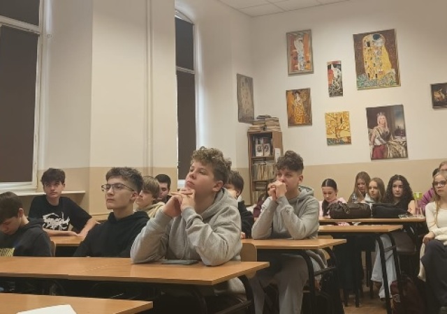Drugim punktem wizyty Pana Doktora był bardzo interesujący wykład dla młodszych humanistów i nie tylko ,,Kobiety w świecie grecko-rzymskim ". Było ciekawie, o czym świadczą również zadawane po wykładzie pytania.