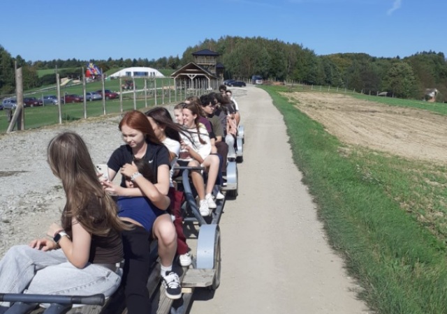 W dniach od poniedziałku 22.09.25 do środy 24.09.25 uczniowie wszystkich klas pierwszych wraz z wychowawcami i opiekunami wzięli udział w wyjazdach integracyjnych do Pstrągowej. Na uczniów czekało mnóstwo atrakcji, np. karmienie oswojonych zwierząt w Mini ZOO, przejazd po okolicy bryczką, byk rodeo, tor pontonowy, dmuchańce, wizyta w indiańskim namiocie Tipi, farma dyniowa, wejście na wieżę widokową, wspólne pieczenie proziaków oraz posiłek (kiełbaski z grilla z pieczywem i gorącą herbatą). Uczniowie wyśmienicie się bawili, było mnóstwo śmiechu a humoru im nie popsuła nawet deszczowa aura, która towarzyszyła klasom 1b, 1d i 1g w środę.