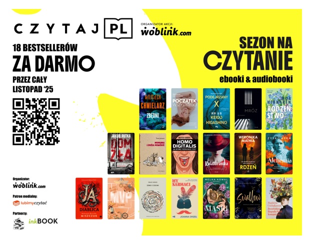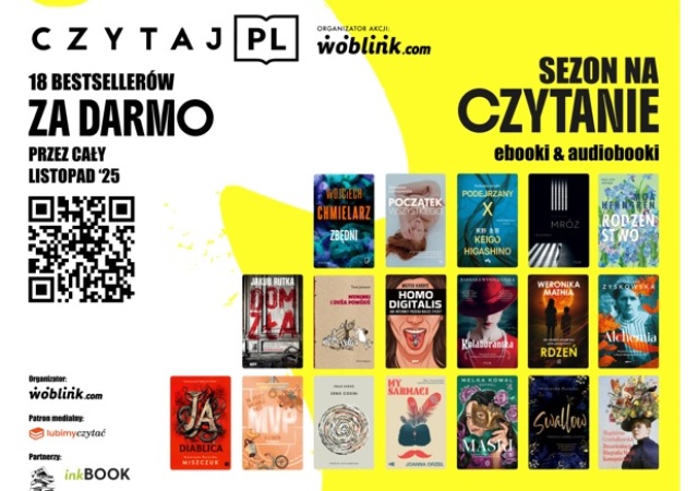 Miło nam poinformować, że biblioteka szkolna po raz kolejny przystępuje do ogólnopolskiej akcji Czytaj PL, której tegoroczne hasło brzmi: „Sezon na czytanie”. Dzięki tej akcji przez cały listopad możecie za darmo przeczytać lub posłuchać 18 bestsellerowych książek. Zarówno fani young adult, reportaży, jak i miłośnicy literatury pięknej, obyczajowej oraz kryminałów znajdą dla siebie idealną lekturę. Aby wziąć udział w akcji wystarczy: pobrać darmową aplikację Woblink, zeskanować kod QR z plakatu (poniżej) lub wejść na stronę akcja.czytaj.pl, a następnie wybrać książkę i zacząć czytać lub słuchać!
