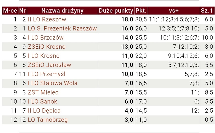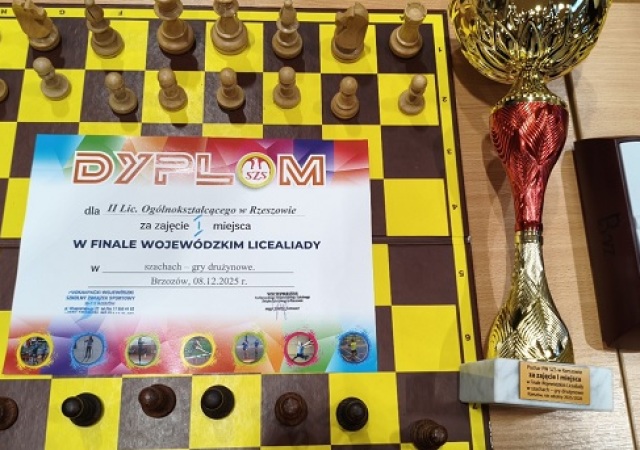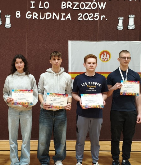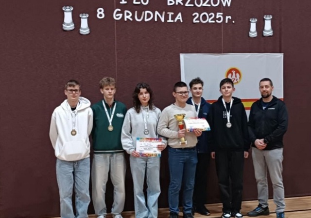 Szkolna Reprezentacja Szachistów w dniu 08.12.2025 r. zdobyła I miejsce w Finałach Wojewódzkich w Brzozowie, bezpośrednio awansując do Finałów Mistrzostw Polski !!!