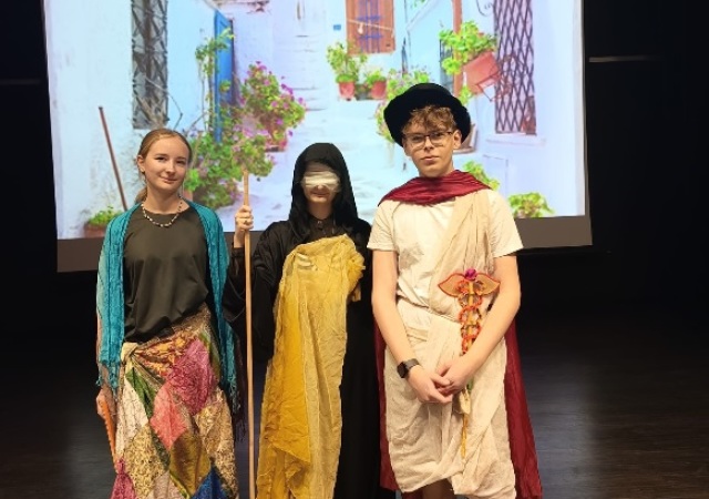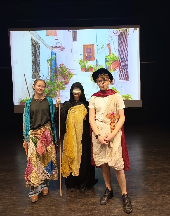Obie Julki i Mikołaj wykazali się wiedzą o obyczajowości w starożytnym Rzymie i Grecji, a także z werwą odegrali przygotowane przedstawienie. Gratulujemy im pasji i życzymy niejednego jeszcze sukcesu.