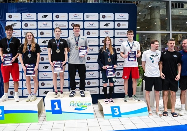 W dniach 18-21 grudnia 2025 w Szczecinie odbyły się Zimowe Mistrzostwa Polski w Pływaniu w kategorii Open, Młodzieżowców 19-23 lat i Juniorów 17-18 lat, gdzie nasz Mistrz zmierzył się nie tylko z zawodnikami w swojej kategorii wiekowej z roczników 2007 i 2008, ale również z najlepszymi pływakami w kraju i wywalczył aż 2 medale, ustalając jednocześnie swój rekord życiowy !!!!
