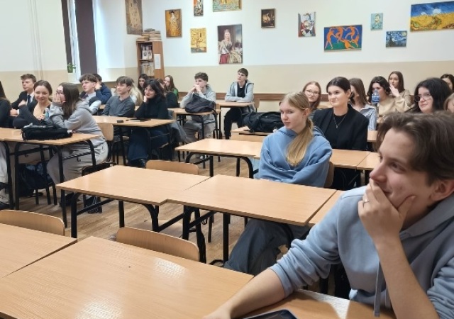 Drugim punktem wizyty Pana Doktora był bardzo interesujący wykład dla młodszych humanistów i nie tylko ,,Kobiety w świecie grecko-rzymskim ". Było ciekawie, o czym świadczą również zadawane po wykładzie pytania.